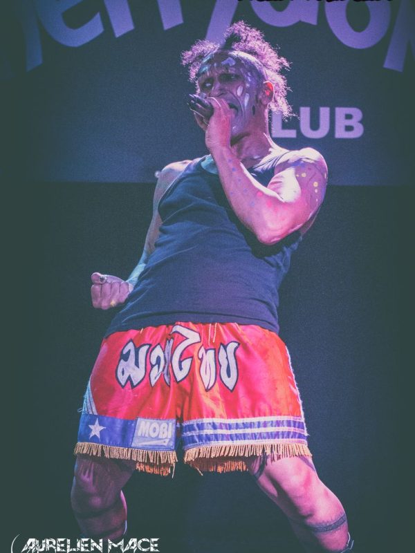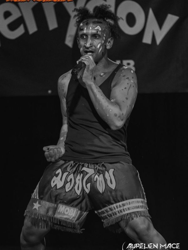 Pour finir, c’est LOKY LONESTAR, performer techno électro zarb, qui arpente la scène. Avec son style bien à lui entre transe techno électro hard core, il est capable d’avoir une voix saturée ou de faire du chant éthnique. Sur scène LOKI est une vraie pile électrique. A plusieurs reprises durant son set, des filles semi dénudées présentes dans la fosse ont partagé la scène avec lui.