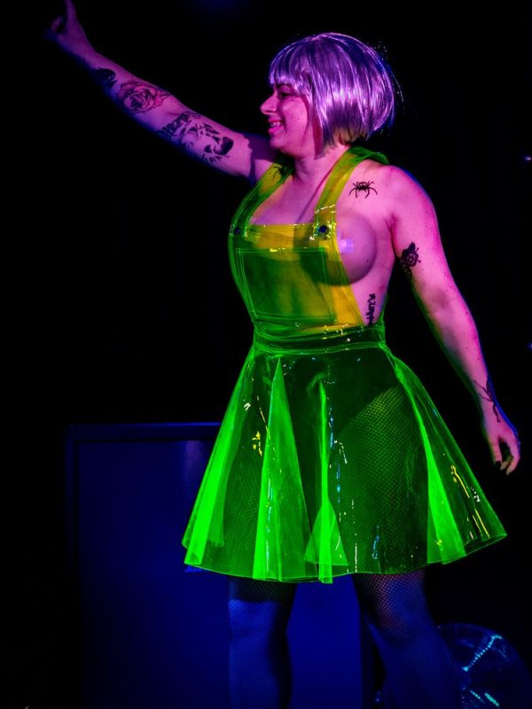 La soirée prend ensuite un tournant plus électro avec SCHULTZ. Dans une veine électro indus, et suite à la sortie de leur album le 6 mai dernier, nous retrouvons sur scène un chanteur – « DJ », un guitariste pour accompagner une performeuse masquée en tenue de cuir et résille.