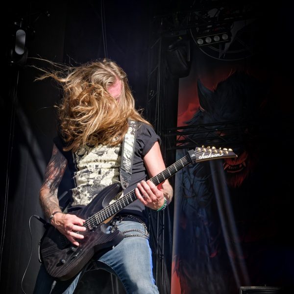 Malgré quelques petites déconvenues techniques au début du set, on est heureux de retrouver sur scène, après quelques soucis de santé, leur énergique guitariste SAM.