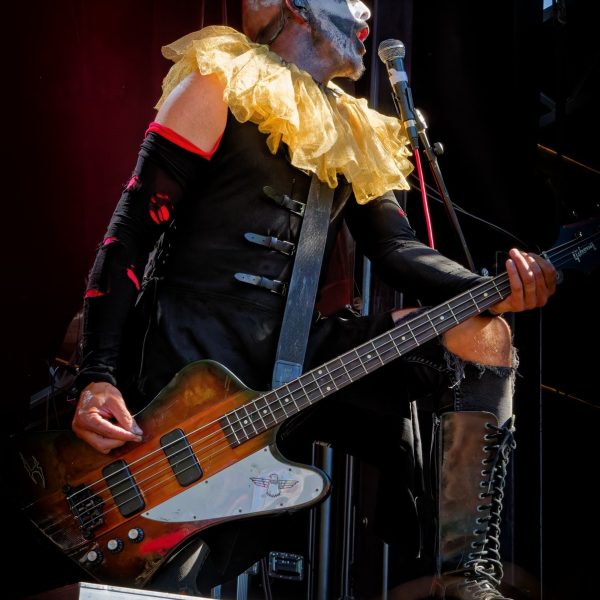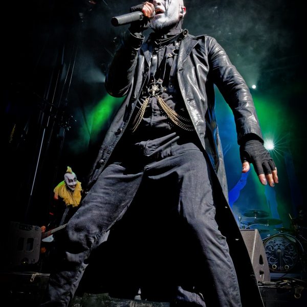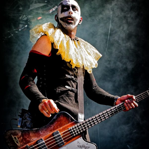 Le combo maquillé et costumé façon clowns dark dans un style à la fois rétro et futuriste aux dominantes noires et dorées déploie une énergie de folie qui ne laissera aucun répit au public durant tout le set.