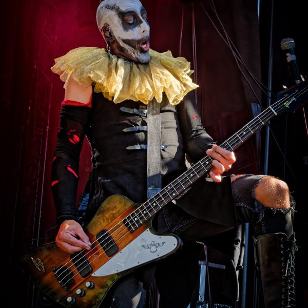 Côté présence scénique, personnellement c’est le bassiste PREMUTOXX, sa crête blonde et sa fraise jaune qui retiendront le plus mon attention avec son personnage complétement déjanté.